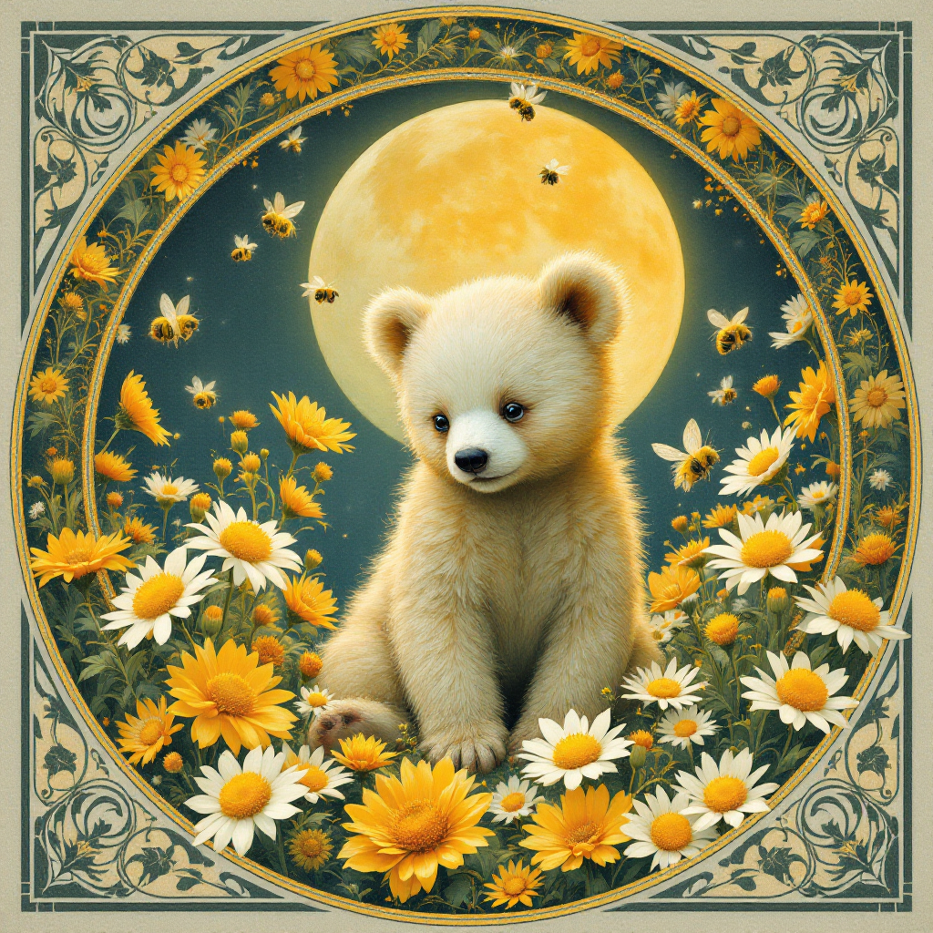 COUPON OURSON BLANC FLEURS JAUNES TEAL 20X20 - 100% coton