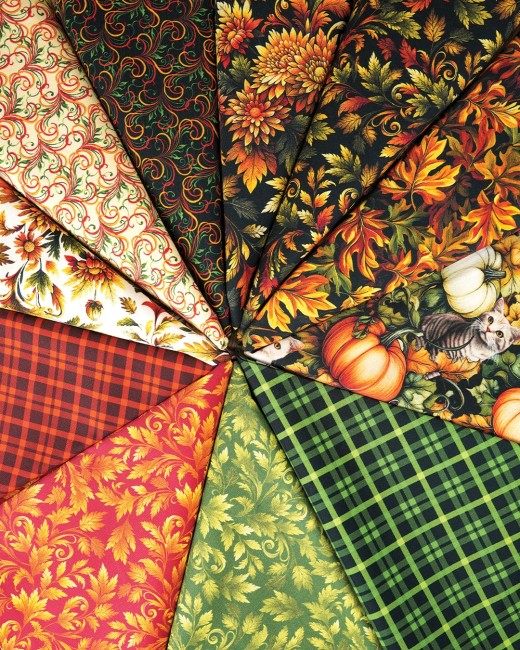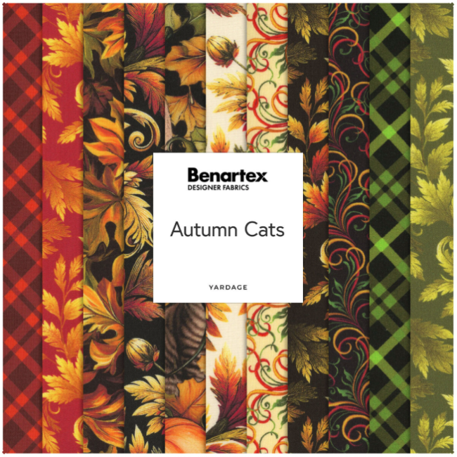 Profitez des visuels élégants de l'automne tout en vous blottissant avec vos amis à fourrure grâce à la collection de tissus de quilting Autumn Cats par Peggy Collins pour Benartex Artistry. Ce tissu est imprimé numériquement, ce qui lui donne des couleurs plus vives et éclatantes que les tissus imprimés traditionnellement à l'écran.