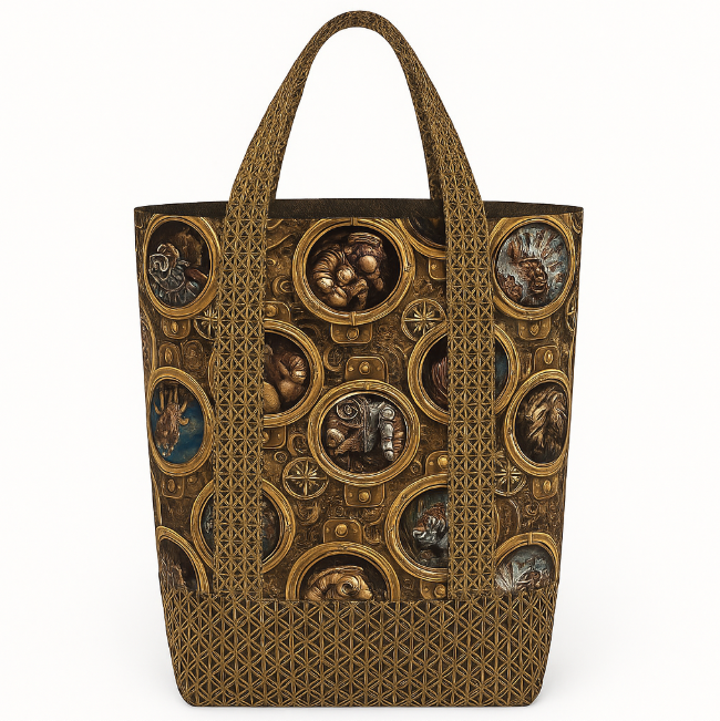 La collection imagine une ménagerie d’animaux transformés en créatures mécaniques : girafe, éléphant, ours, hibou, zèbre, paon ou hippopotame apparaissent comme s’ils étaient construits en métal, entourés de roues dentées et de mécanismes complexes, créant un univers à la fois fantastique et rétro-futuriste.