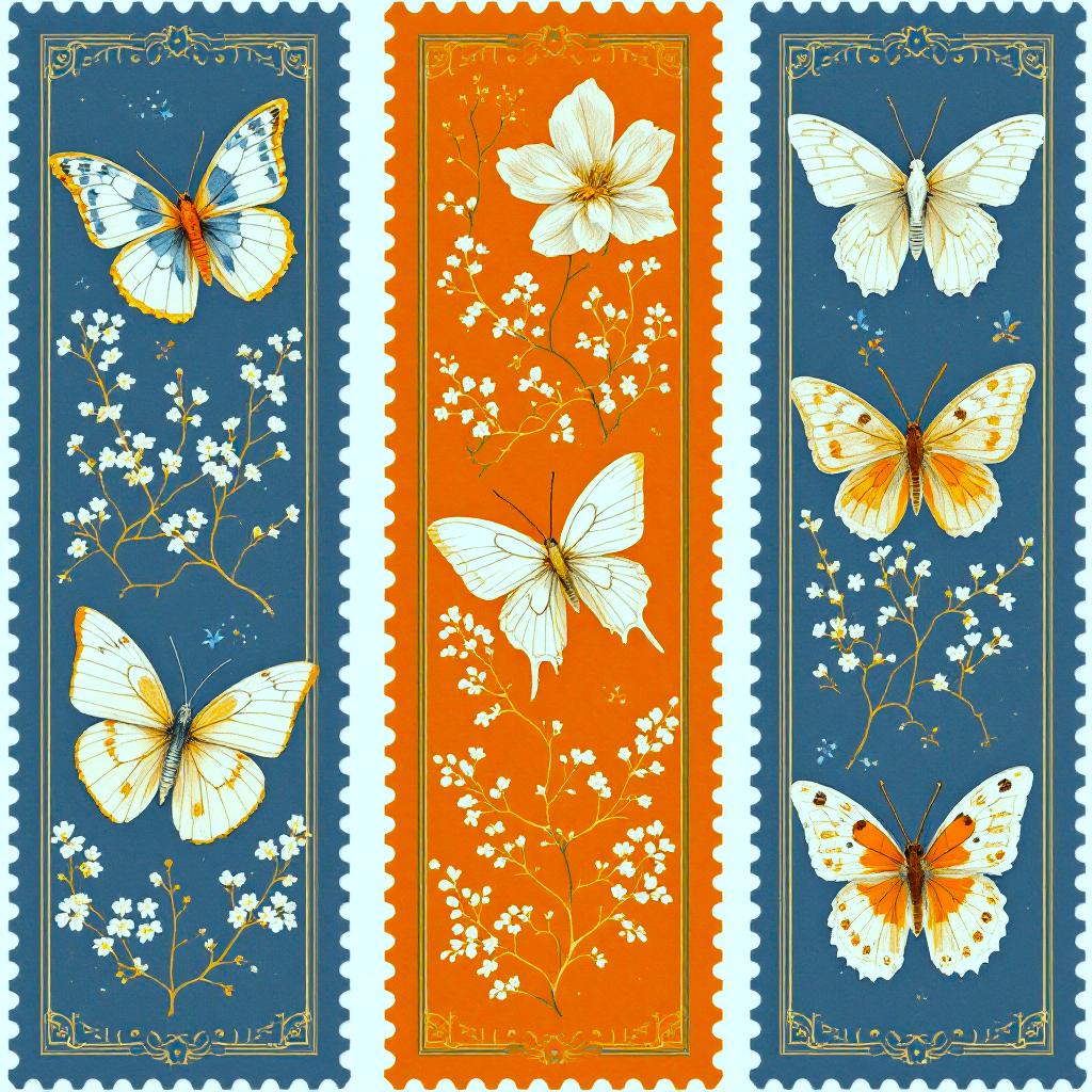 COUPON SIGNETS PAPILLONS PETROLE ET ORANGE AU CENTRE 20X20 - tissu 100% coton