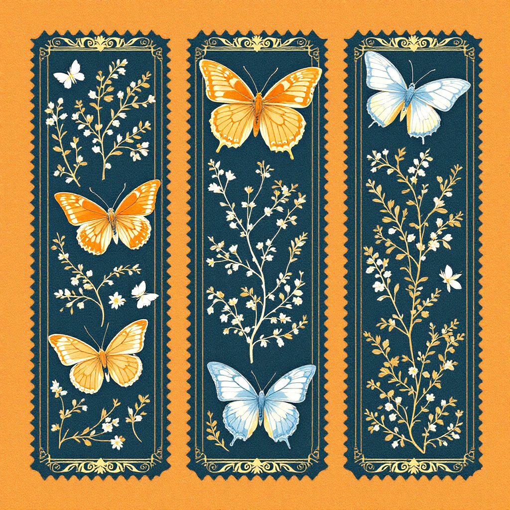 COUPON SIGNETS PAPILLONS PETROLE FOND ORANGE 20X20 - tissu 100% coton