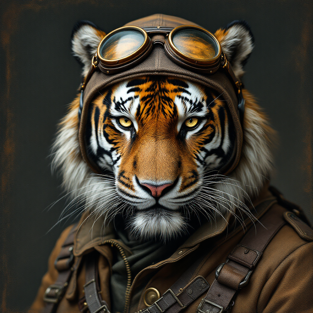 Carré 35X35 TIGRE AVIATEUR DE 3/4 - polyester imperméable supérieur ( 300gr/m2)
