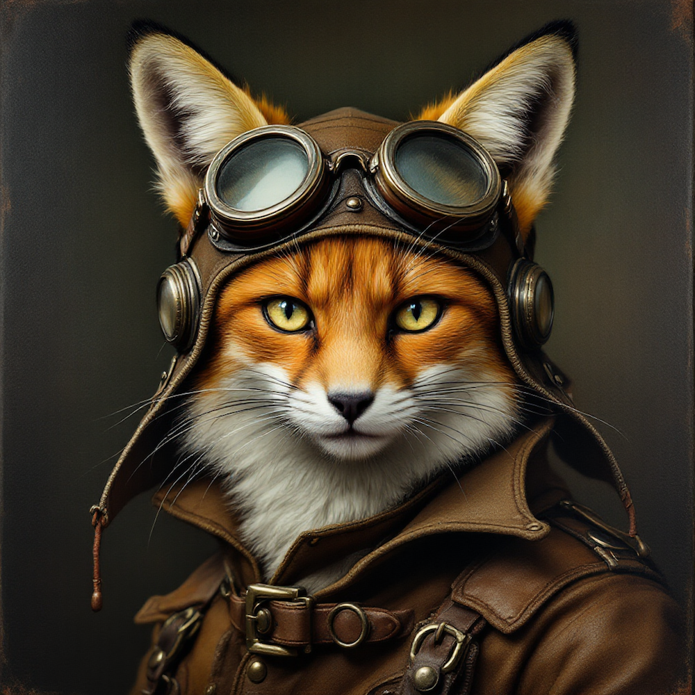 Carré 35X35 RENARD AVIATEUR - polyester imperméable supérieur ( 300gr/m2)