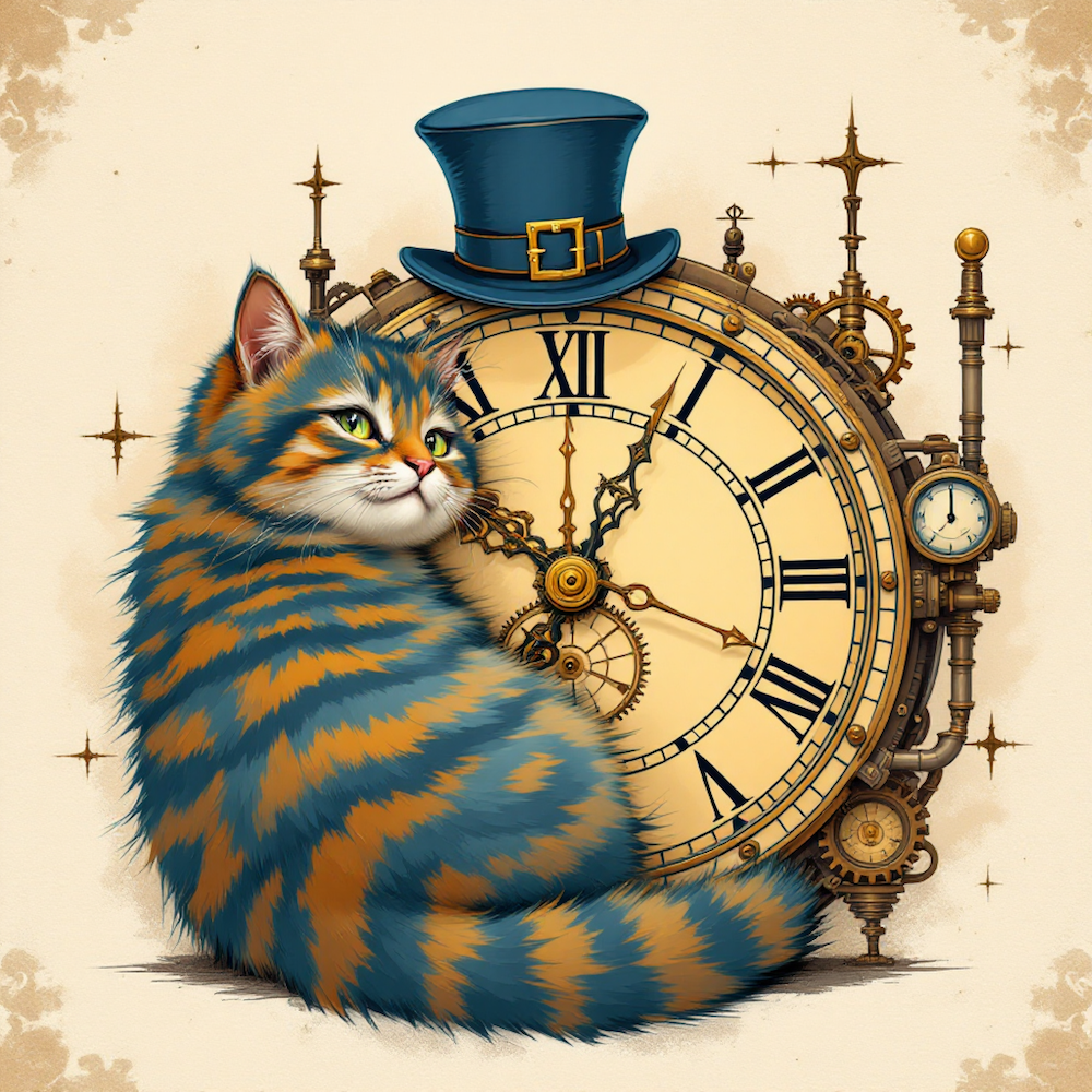 Carré CHAT PENDULE STEAMPUNK - polyester imperméable supérieur ( 300gr/m2)