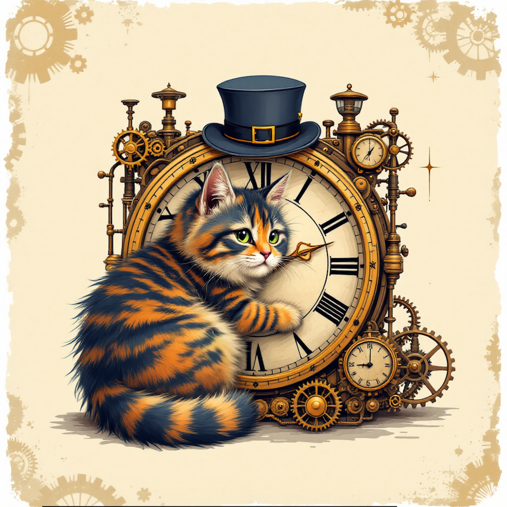 Carré CHATON PENDULE STEAMPUNK - polyester imperméable supérieur ( 300gr/m2)