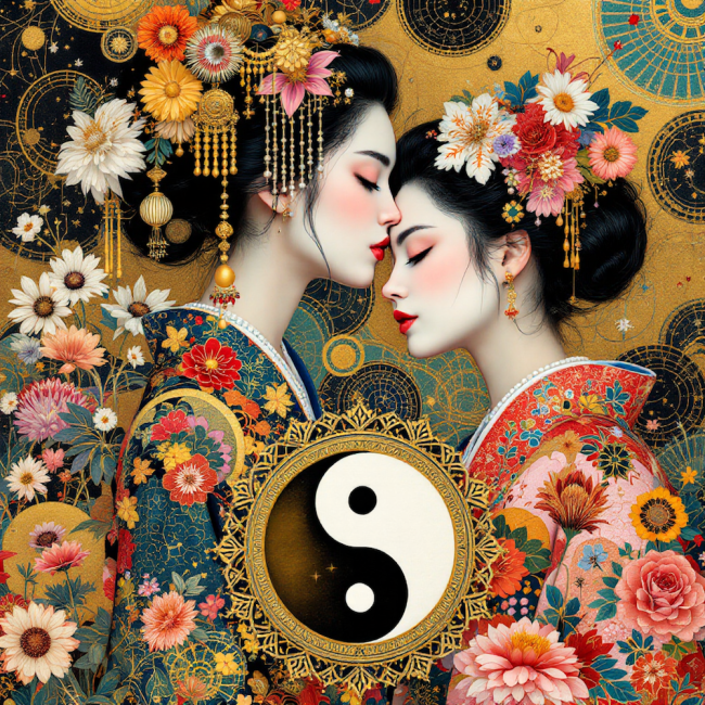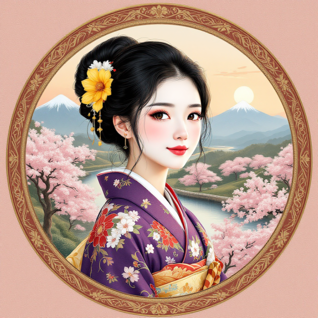Carré 20X20 GEISHA MEDAILLON KIMONO VIOLET - polyester résistant souple infroissable (210gr/m2)