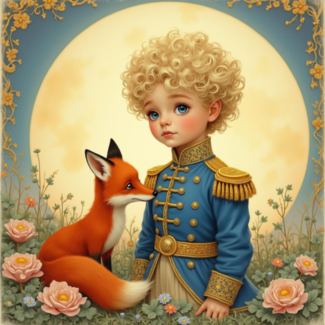 Carré vignette 11X11 PETIT PRINCE FOND BLEU - polyester résistant souple infroissable (210gr/m2)