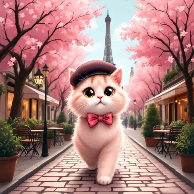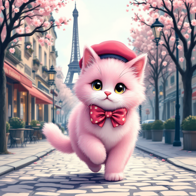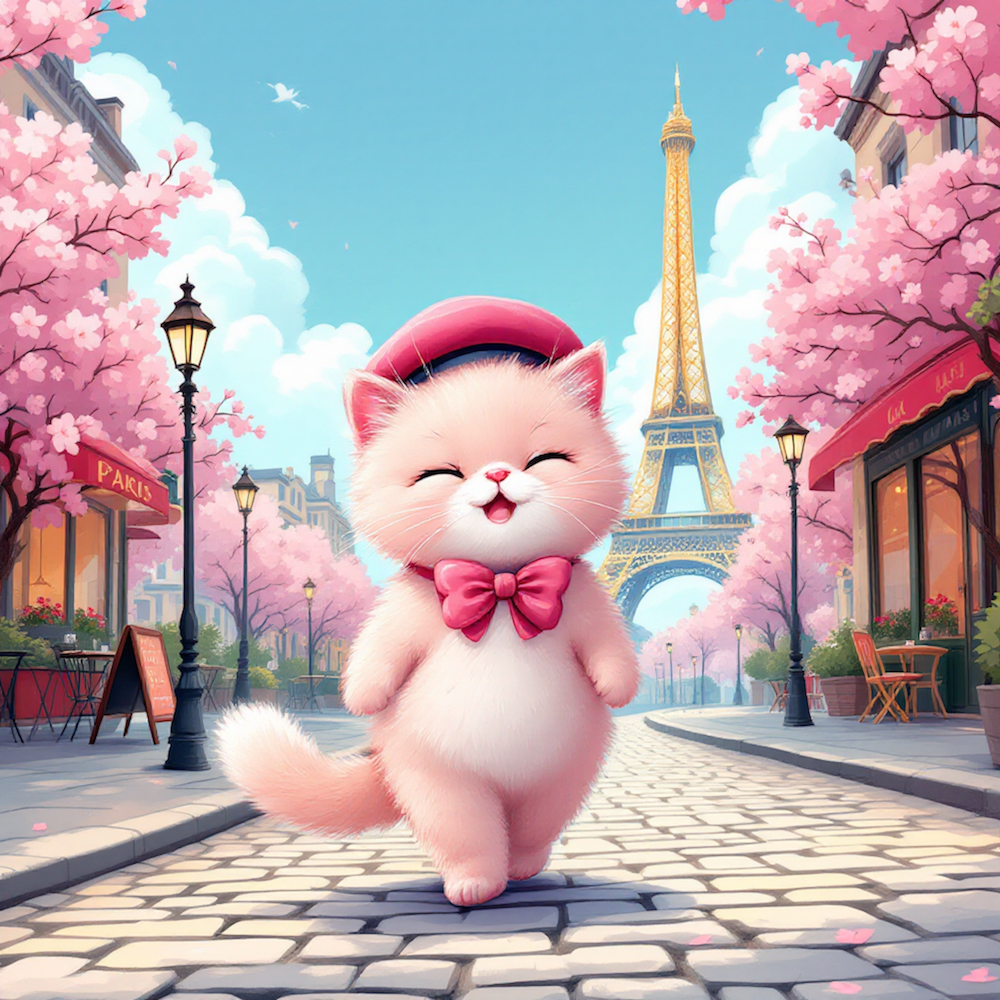 Carré vignette 11X11 CHAT ROSE PARIS YEUX CLOS - polyester résistant souple infroissable (210gr/m2)