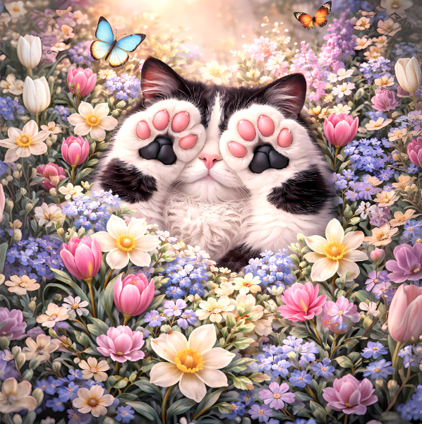 Carré CHAT DODO TULIPES ET AUTRES 40X40 - polyester IMPERMEABLE codura (190gr)