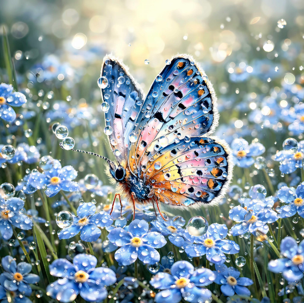 Carré PAPILLONS MYOSOTIS 40X40 - polyester IMPERMEABLE codura (190gr)