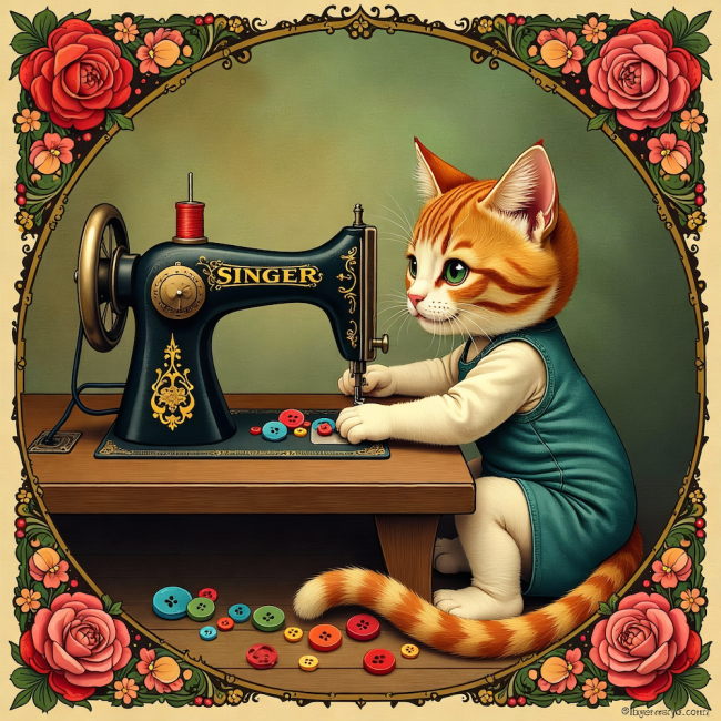 COUPON CHATON ROUX MACHINE SINGER VERT 20X20 - 100% coton