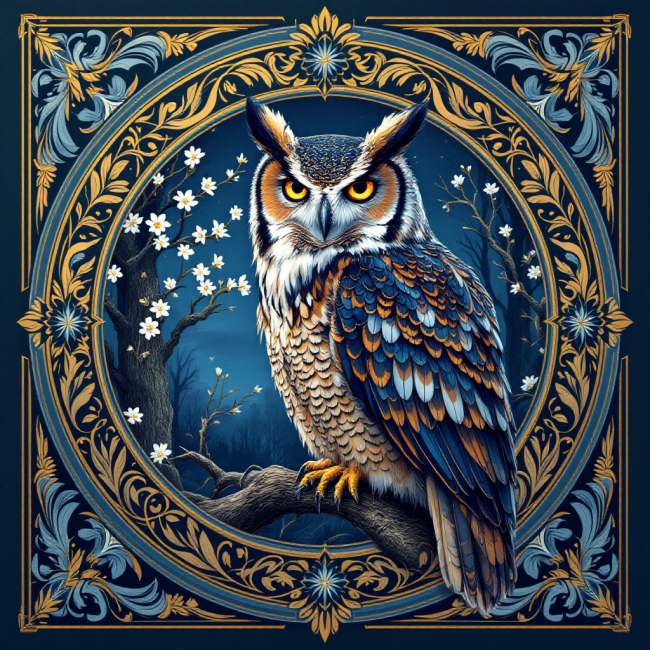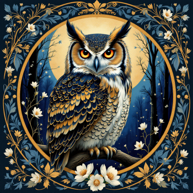 COUPON CHOUETTE BLEUE CLAIR DE LUNE 20X20 - 100% coton