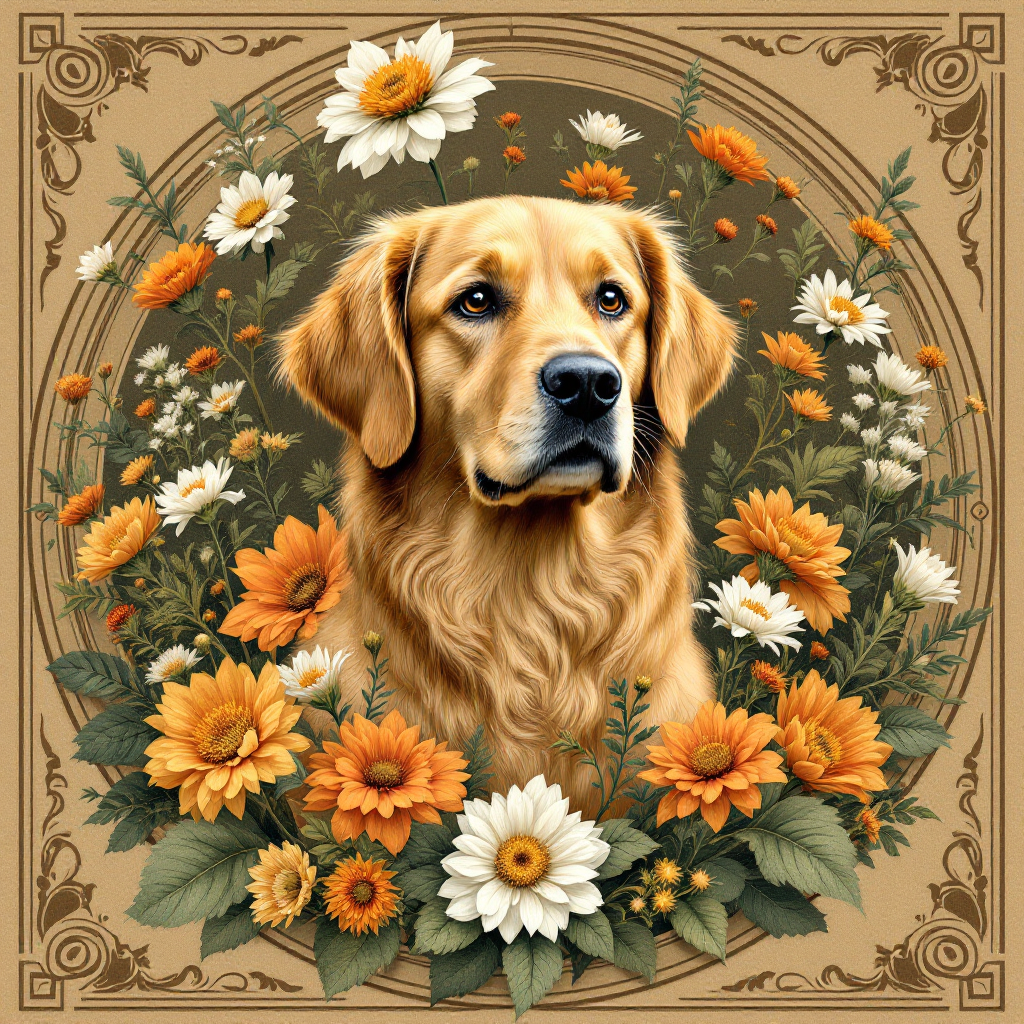 COUPON GOLDEN RETRIEVER DE 3/4 BEIGE 20X20 - 100% coton