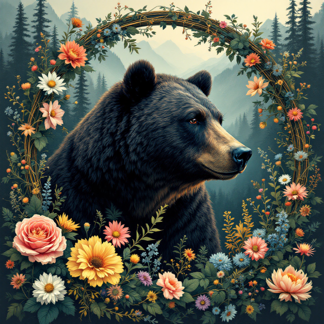 COUPON OURS GRIZZLY NOIR MONTAGNE 20X20 - 100% coton