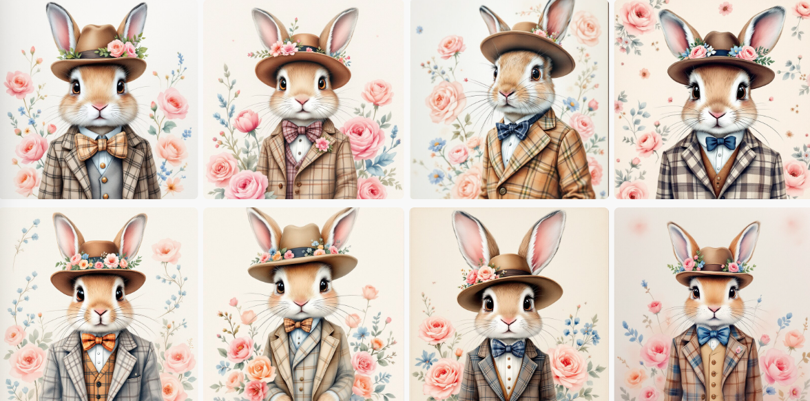 Ensemble de 8 coupons 13X13 MR LAPIN GENTLEMAN ROMANTIQUE à coudre pour lingettes - Créations Nadège Tissus