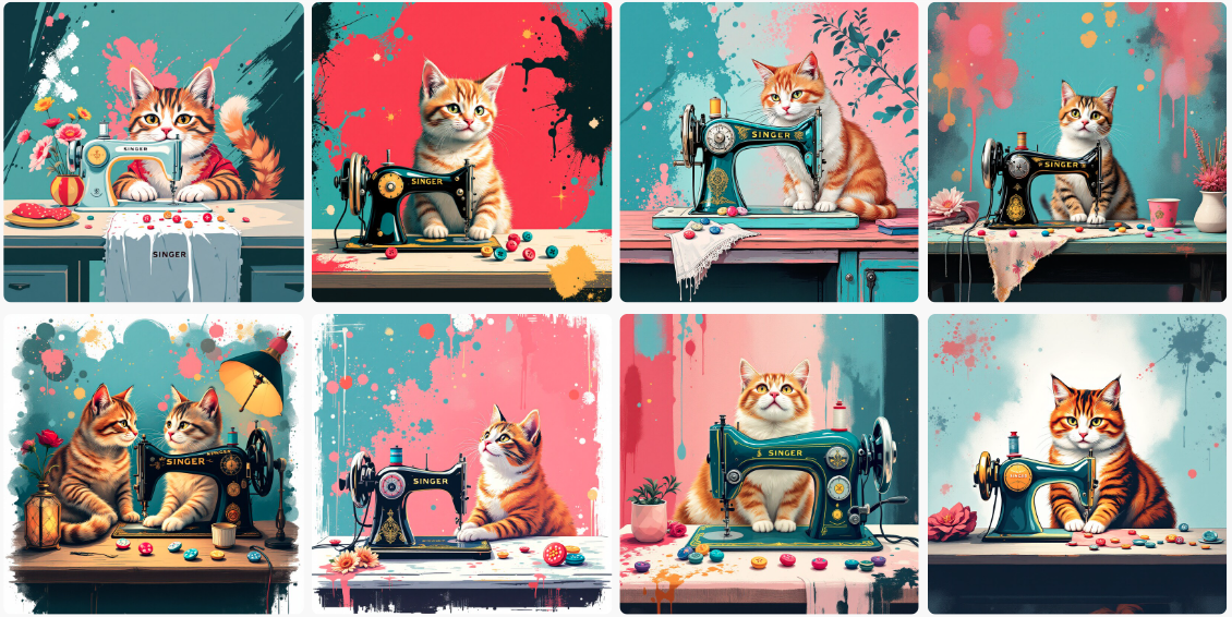 Ensemble de 8 coupons 13X13 CHATS MACHINES A COUDRE SPLASH à coudre pour lingettes - Créations Nadège Tissus