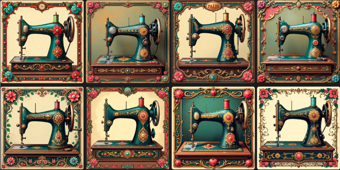 Ensemble de 8 coupons 13X13 MACHINES A COUDRE VINTAGE à coudre pour lingettes - Créations Nadège Tissus
