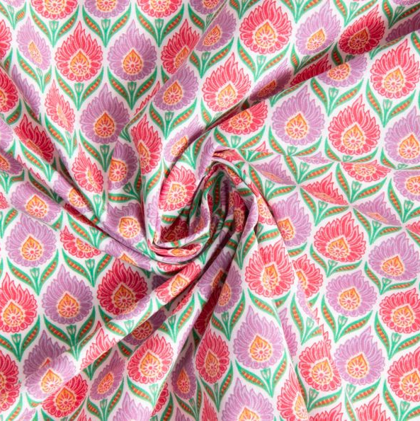 Ce tissu lisse et  Léger est 100 % coton, une matière facile à coudre.