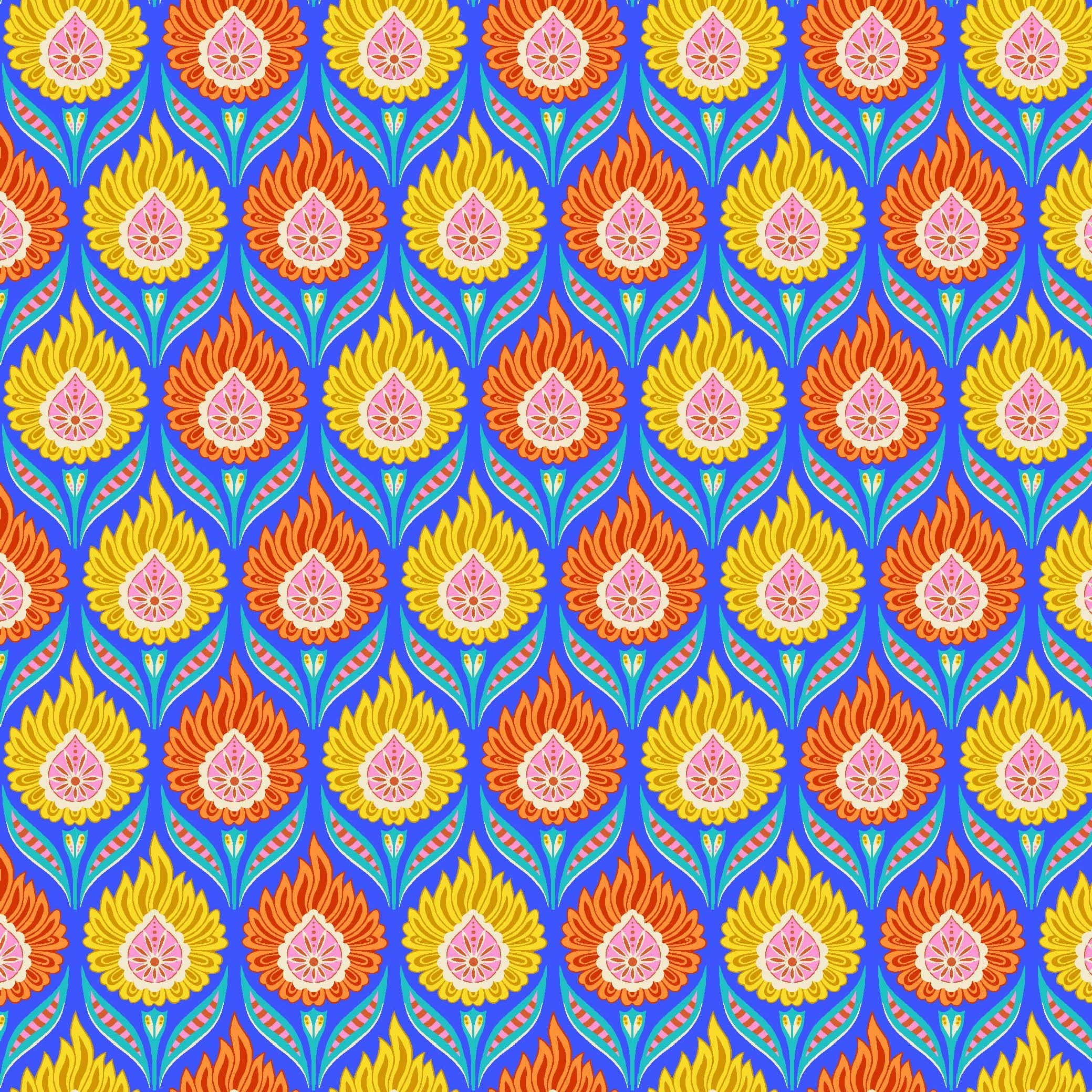 Tissu percale de coton JAIPUR BLEU ROI JAUNE ET ORANGE - vendu par 50 cm