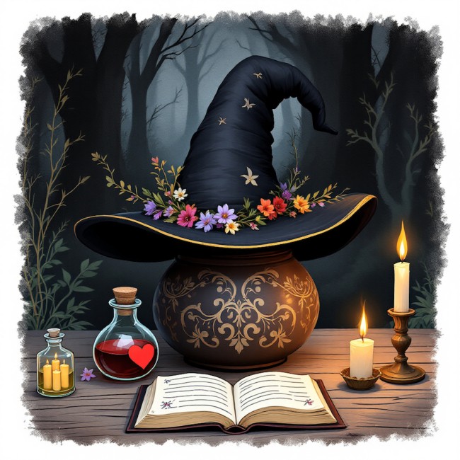 Carré vignette 11X11 CHAPEAU SORCIERE GRMOIRE - polyester résistant souple infroissable (210gr/m2)