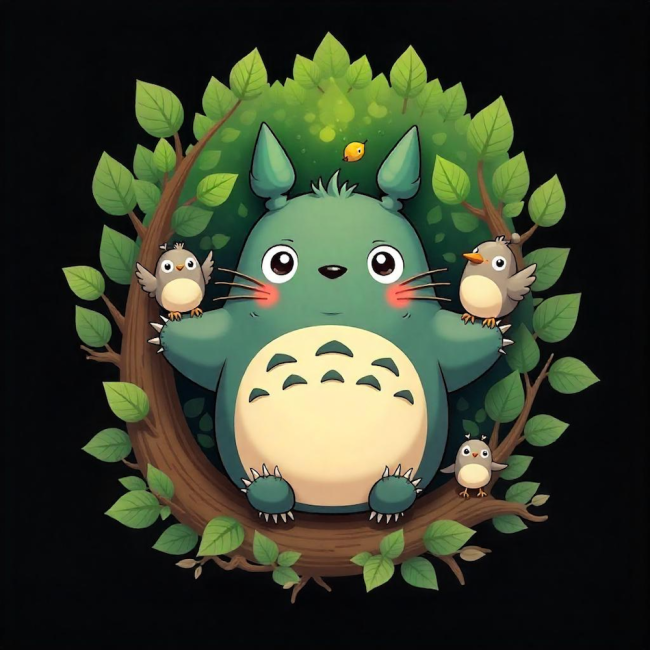 Carré vignette 13X13 TOTORO 2 OISEAUX - polyester résistant souple infroissable (210gr/m2)