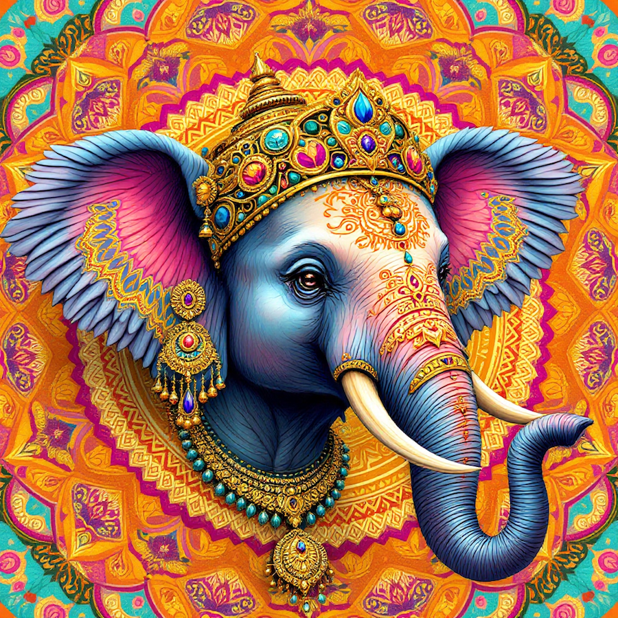 Carré 20X20 ELEPHAN INDIEN DE 3/4 - polyester résistant souple infroissable (210gr/m2)