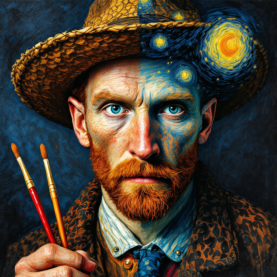 Carré 20X20 PORTAIT VAN GOGH DE FACE - polyester résistant souple infroissable (210gr/m2)