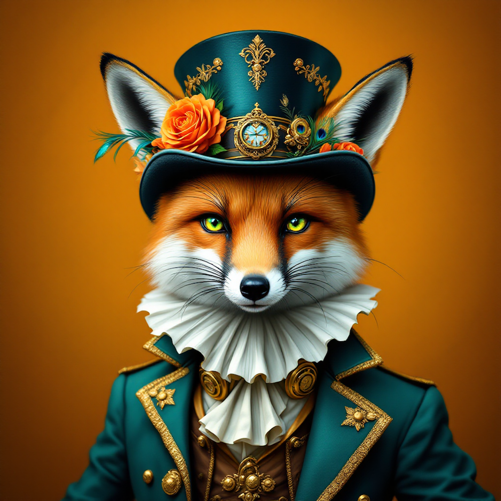 Carré 20X20 LORD RENARD STEAMPUNK 1 ROSE ORANGE - polyester résistant souple infroissable (210gr/m2)