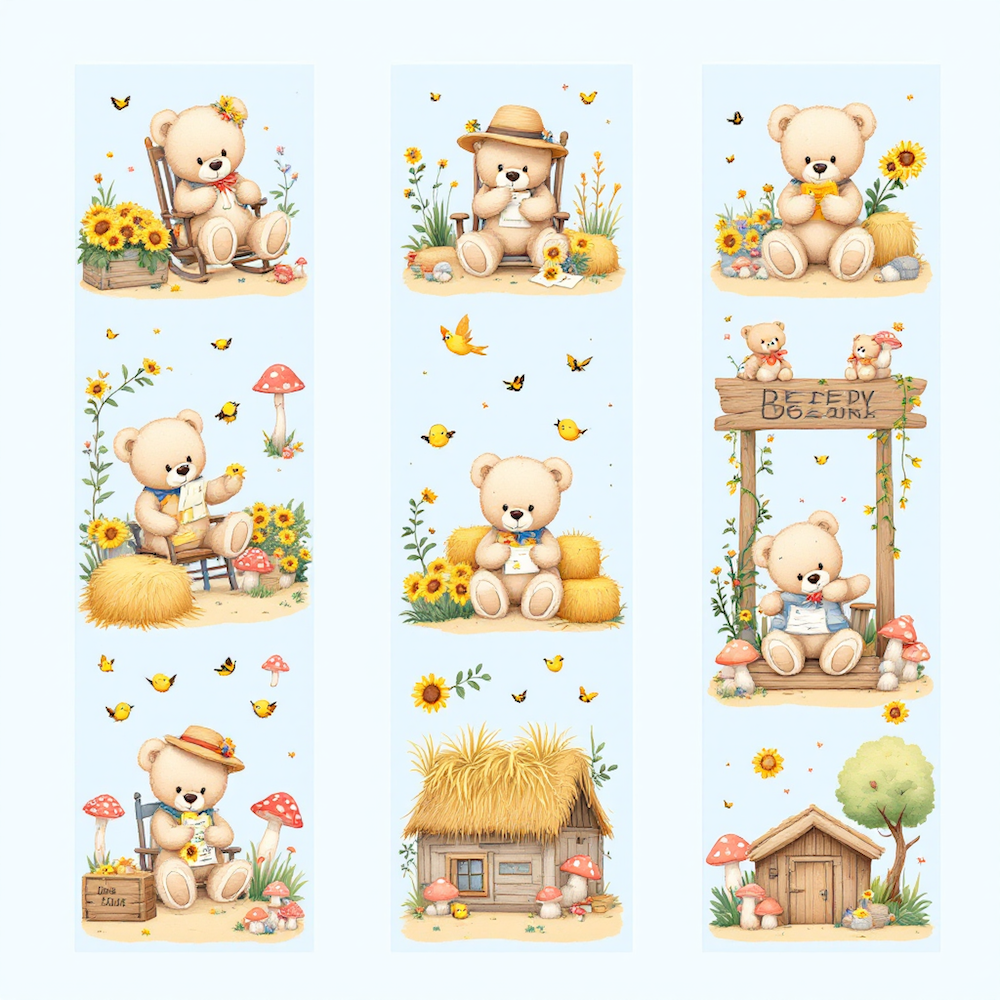 Carré 20X20 SIGNETS OURS PELUCHES BLEU CIEL - polyester résistant souple infroissable (210gr/m2)