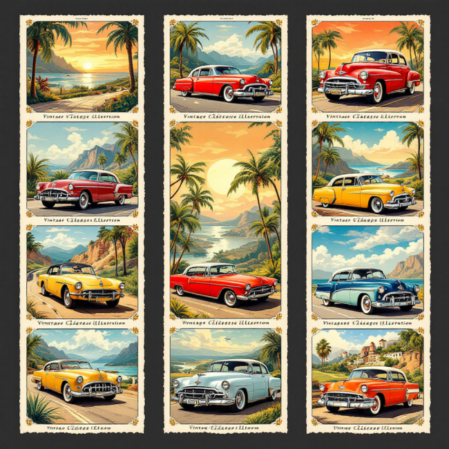 Carré 20X20 SIGNETS VOITURES VINTAGE NOIR - polyester imperméable supérieur ( 300gr/m2)