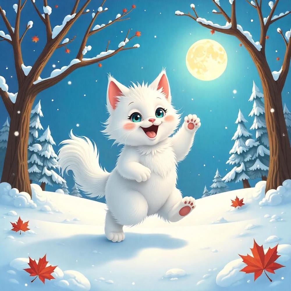 Carré 15X15 CHAT NEIGE DEBOUT - polyester résistant souple infroissable (210gr/m2)