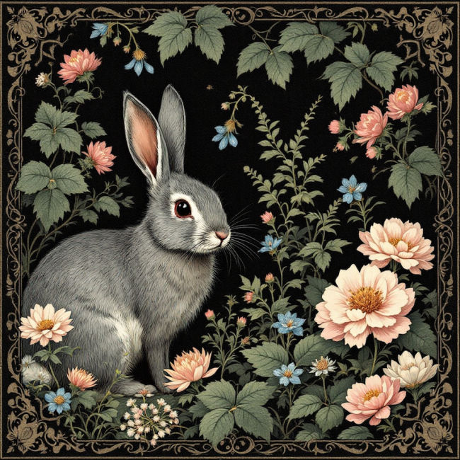 CARRE 20X20 LAPIN GRIS MORRIS - cretonne 100% coton (156 gr)