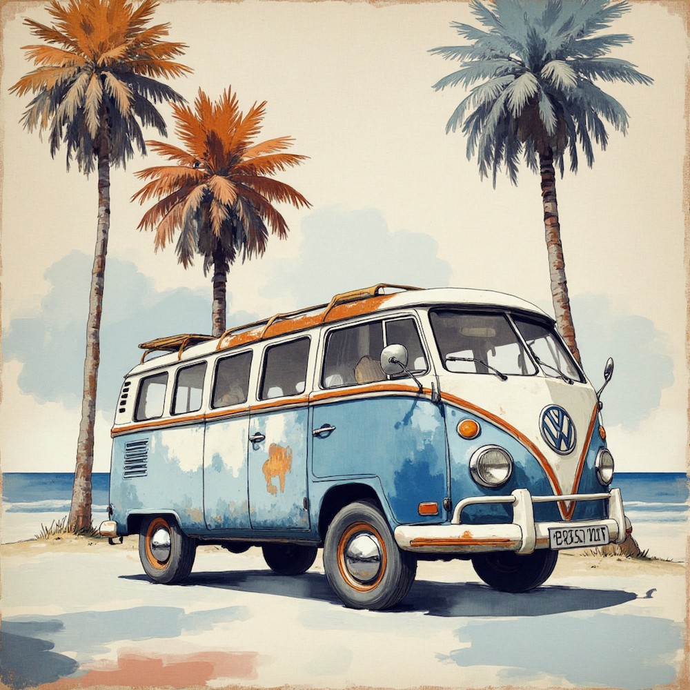 CARRE 20X20 COMBI VW BLEU VINTAGE 3 PALMIERS - simili cuir (550 gr)