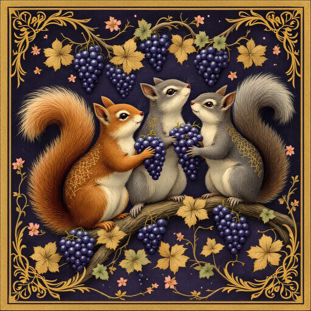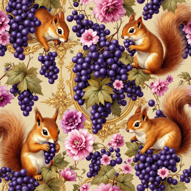 COUPON TRIO ECUREUILS RAISINS 20X20 - 100% coton
