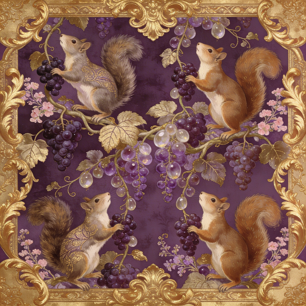 COUPON 4 ECUREUILS RAISINS CADRE GOLD 20X20 - 100% coton