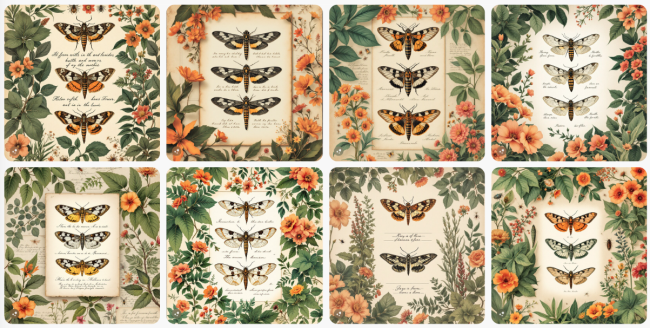 Ensemble de 8 coupons 13X13 PAPILLONS BOTANICAL ORANGE VERT à coudre pour lingettes - Créations Nadège Tissus