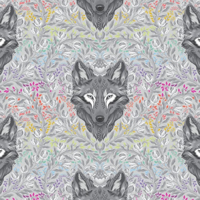 Tissu GRAYWORK LOUP WOLF OF PINK STREET FOG - Tula Pink pour Free Spirit