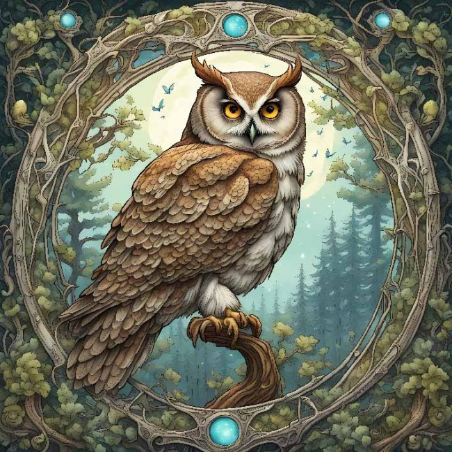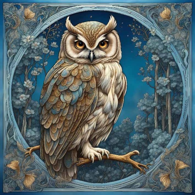 Carré CHOUETTE PIERRES BLEUES 45X45 - Velours Manille
