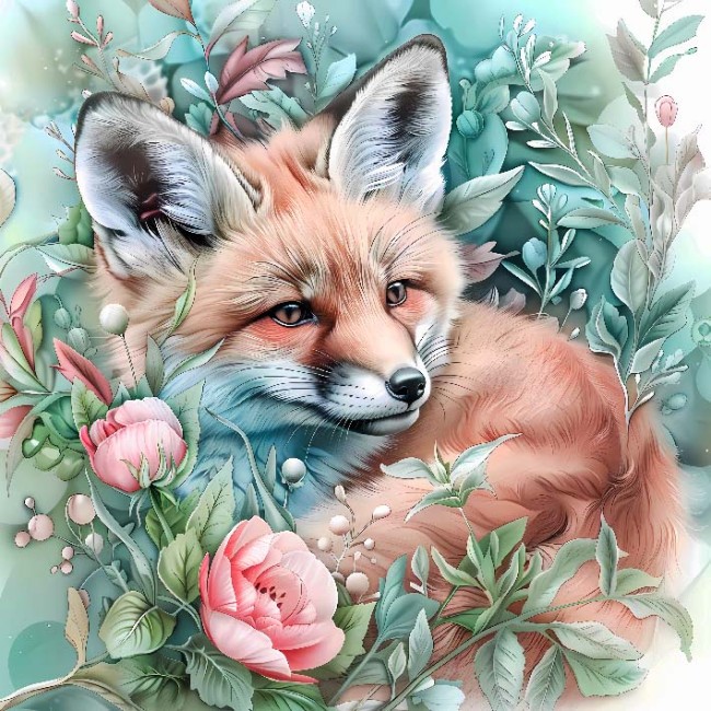 Carré RENARD PIVOINES TURQUOISE 45X45 - Velours Manille