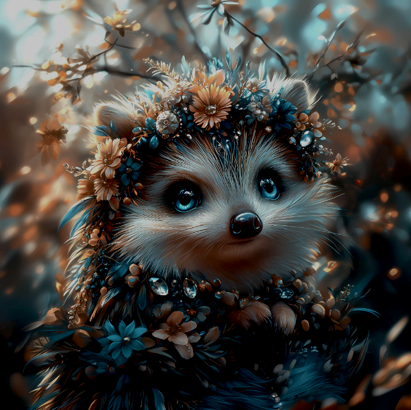 Carré HERISSON BIJOUX BLEU 20X20 - polyester IMPERMEABLE