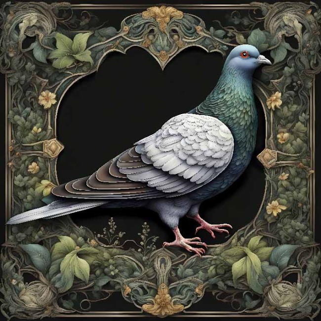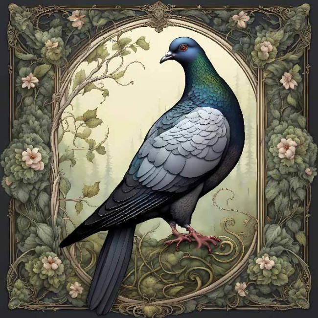 Carré PIGEON ART NOUVEAU FOND NOIR 45X45 - Velours Manille