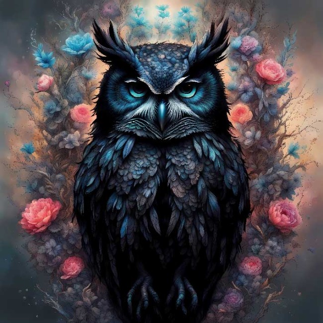 Carré HIBOU NOIR 45X45 - Velours Manille
