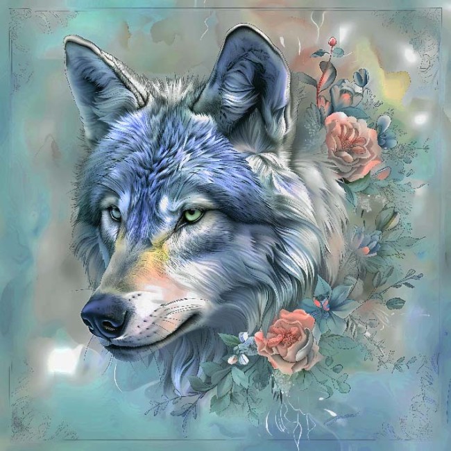 Carré LOUP FOND TURQUOISE 45X45 - Velours Manille
