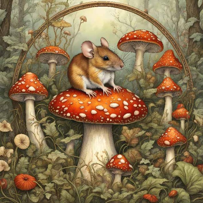 Carré SOURIS CHAMPIGNONS 45X45 - Velours Manille